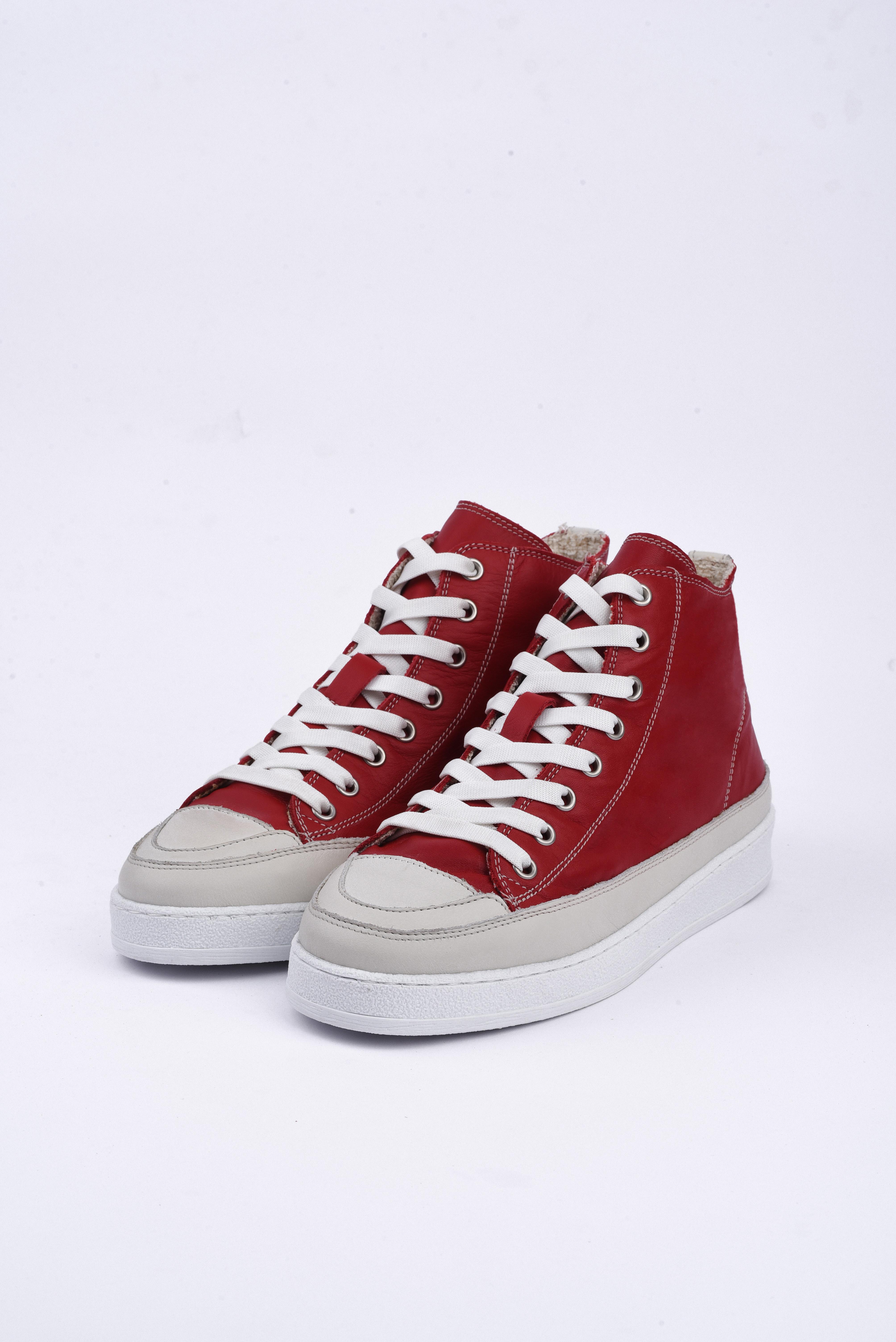 Basket demi rouge cuir